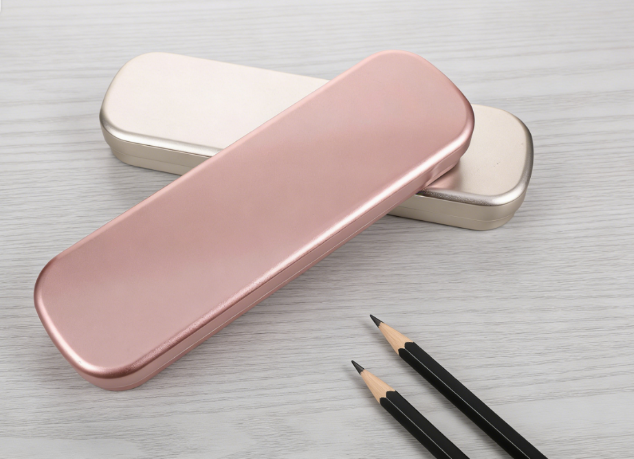 This two-piece metal pencil case set uses durable tin material with scratch-resistant surface. The silver and purple combination is fashionable and eye-catching; the portable design suits carrying on the go or as fixed desktop storage—sturdy and durable.