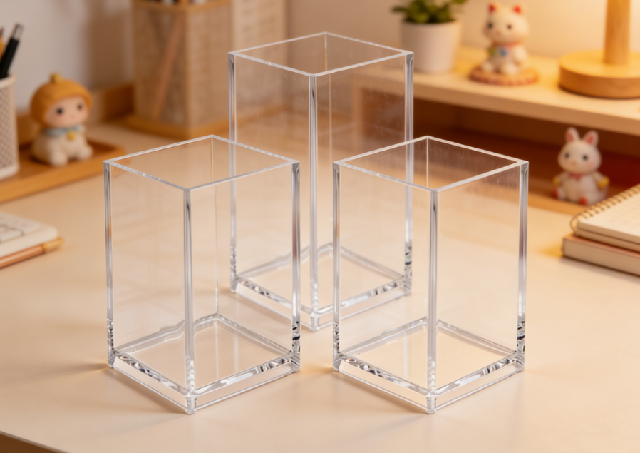 A set of multiple transparent acrylic storage cups for coordinated use. Through combined placement, you can categorize and store different colors or types of pens, brushes, and more, creating a unified yet flexible desktop storage system.